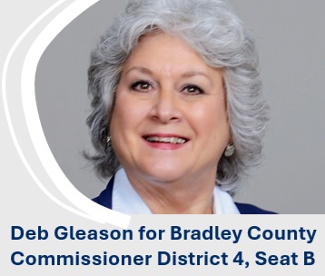 Deb Gleason is a mom, grandmom, and long time resident of Bradley County who will fight to ensure our local government is fiscally responsible, end old politics, improve housing, and serve the community she loves with honesty and dedication.